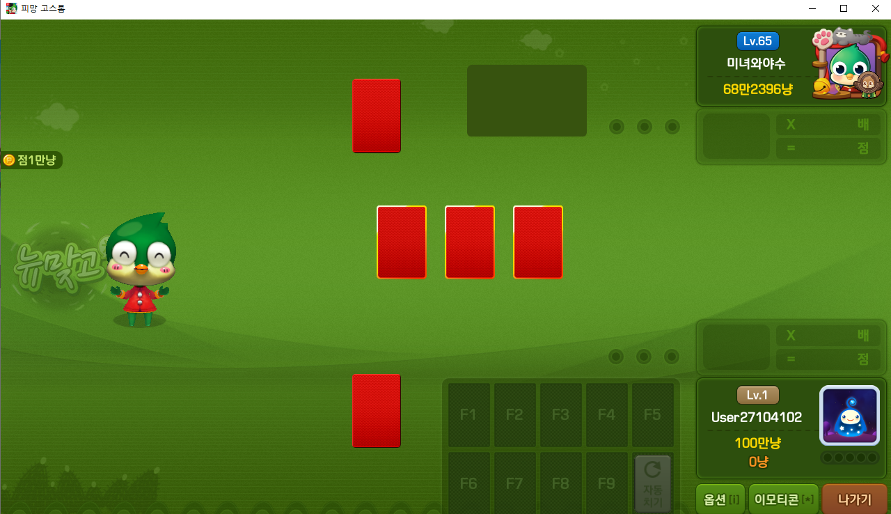 상대방 유저가 입장하면 게임이 시작됩니다.즐거운 피망뉴맞고 게임 한판 즐기시기 바랍니다.