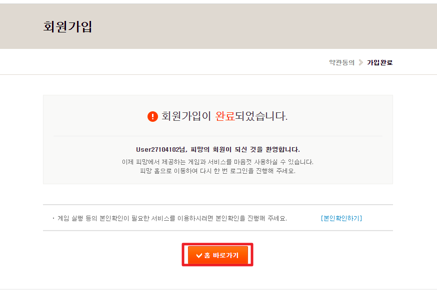 저는 네이버아이디로 로그인하여 회원가입을 완료했습니다.이제 홈바로가기를 눌러주세요